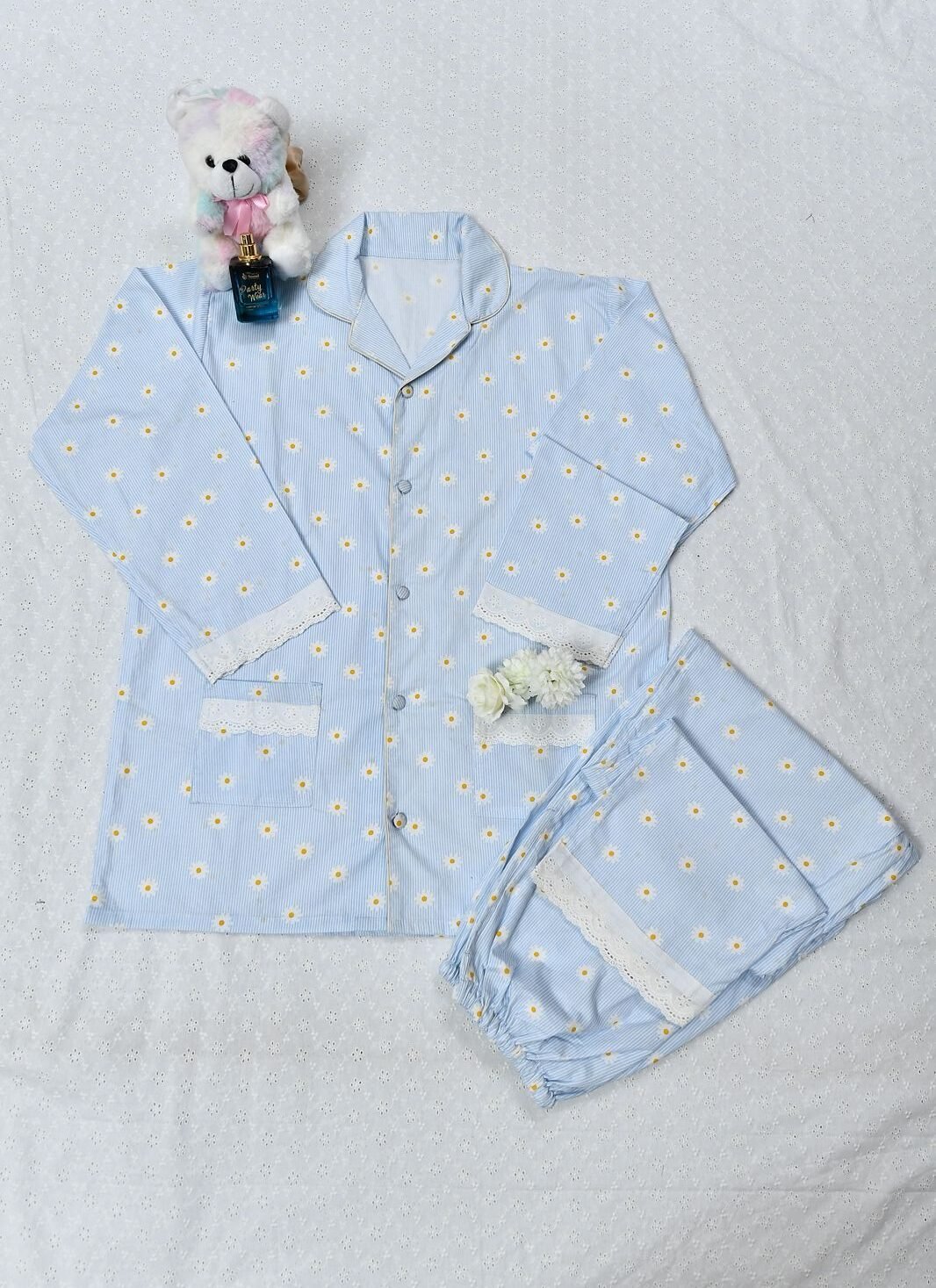 Soft and stylish Flower cotton night suit designed for all-night comfort. Crafted from pure cotton, this nightwear set features a shirt-style top with a button-down front and a matching pajama with an elasticated waist. Ideal for sleeping, lounging, and everyday home wear.